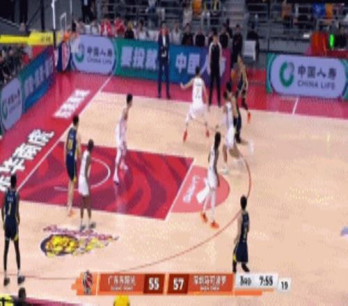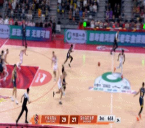 节中杜锋撤下徐杰换上张文逸,贺希宁撞开张文逸打出2+1,广东三分球连打3铁,与此同时,6分钟篮板更是1-7远远落后,周鹏飚进三分后,深圳领先来到19-10。