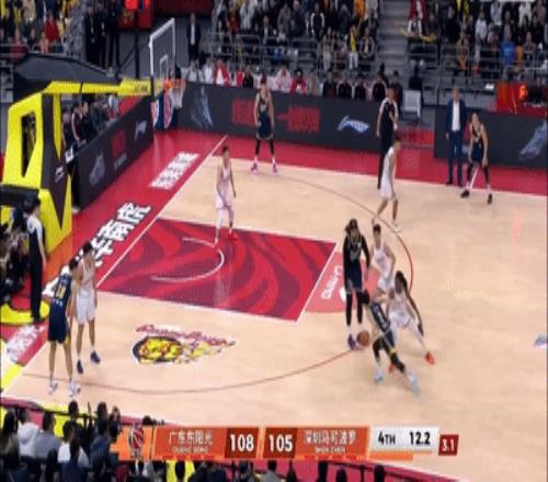 第三节堪称神仙打架,两队互飚三分,广东单节三分10中7,深圳也飚进了7记三分还打进了一记超远压哨三分;