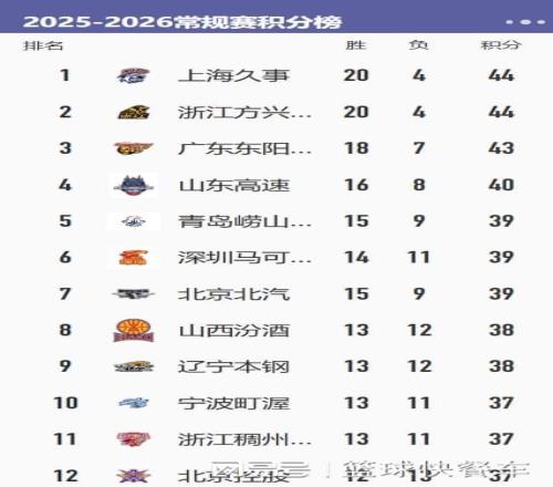 CBA积分榜最新排名出炉!广东终结连败稳居第3:上海第1辽宁第9