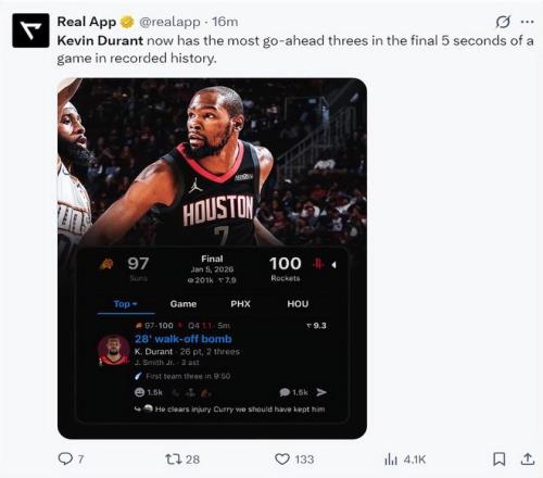 KD准绝杀休媒为之疯狂!决胜时刻命中70%真领袖火箭系交易赢家