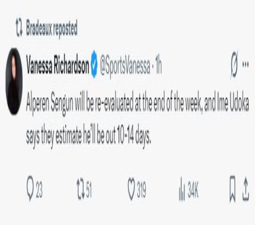 火箭:杜兰特26分10篮板4助攻(三分12中2),阿门17分7篮板6助攻,史密斯17分7篮板,伊森12分8篮板,亚当斯8分11篮板,谢泼德11分3篮板。