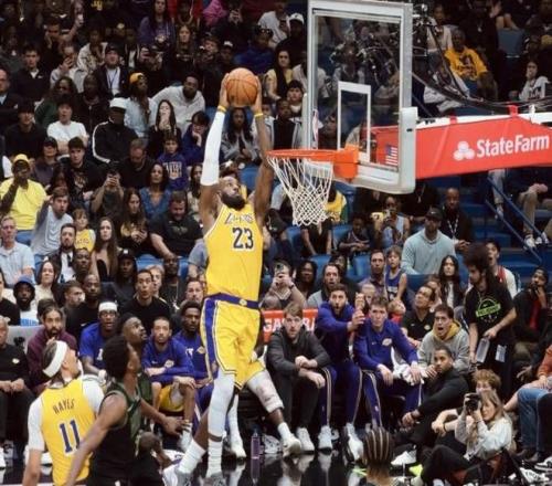 空接暴扣+大风车劈扣!41岁詹皇轰30+8+8再破纪录:湖人双核逞威
