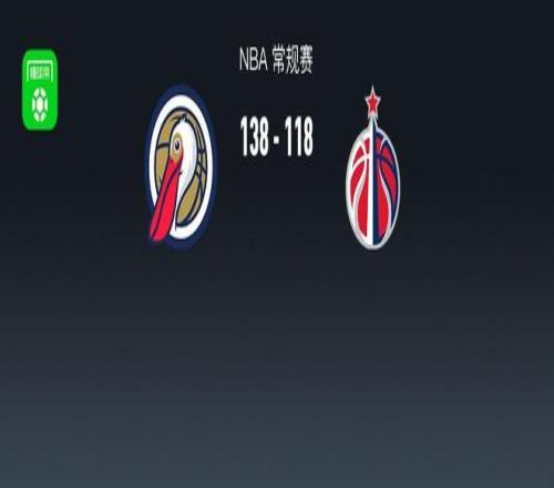 第四节鹈鹕萨迪克-贝拿下8分,奇才威尔-莱利拿下7分,最终鹈鹕138-118战胜奇才