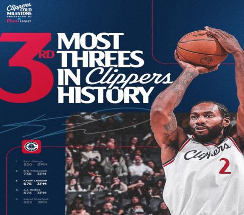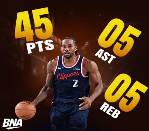 4.单场45+5+5成为快船队史第四人:弗里、保罗、乔治、小卡;