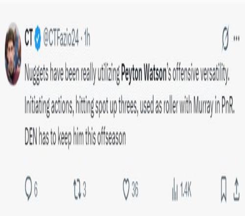 美媒:目前的掘金非常依靠沃特森的多样性,他能发起进攻、命中空位三分,他跟穆雷的挡拆可以顺下攻框,掘金必须留住他。