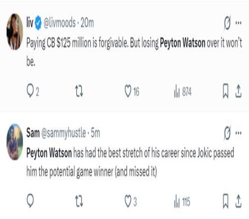 美媒:给沃特森五年1.25亿的大合同吧,沃特森真的绝配这样的合同,如果失去他会得不偿失。沃特森在约基奇伤停后迎来了生涯最辉煌的阶段。