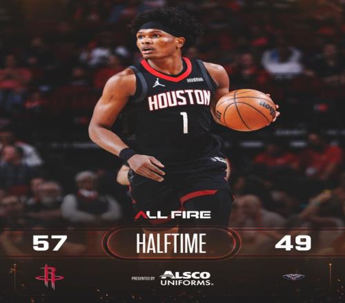 火箭队的汤普森上半场得到15分和7个篮板,杜兰特得到14分、4个篮板和3次助攻;鹈鹕队的穆雷得到19分和5个篮板,墨菲得到10分。