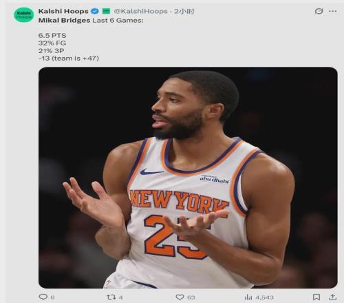 北京时间3月16日,NBA常规赛,尼克斯主场110-107险胜勇士。尼克斯球员米卡尔-布里奇斯首发出战21分钟,投篮10中3,三分6中1,得到7分3篮板2助攻1抢断2盖帽1失误2犯规,正负值-2。最近3场比赛,大桥三分合计15中3。