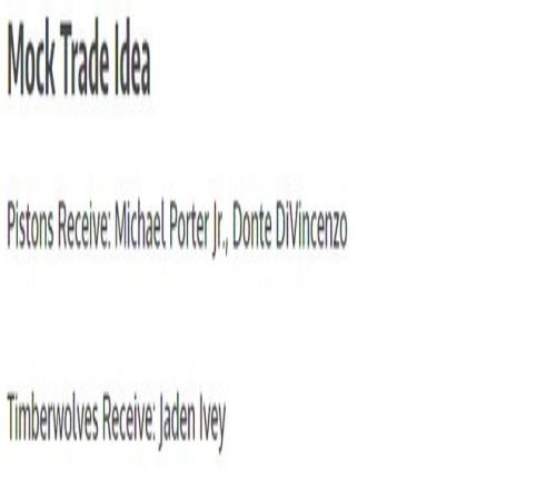 在露天看台的潜在交易方案中,活塞得到:迈克尔·波特二世,唐特·迪文琴佐;森林狼队接球:贾登·艾维;篮网得到:托比亚斯·哈里斯,2026年首轮选秀权(活塞),2026年首轮选秀权交换权(森林狼),2032年首轮选秀权(活塞),2026年、2027年第二轮选秀权(森林狼)。那么这笔交易如果达成,潜在的影响有哪些呢?