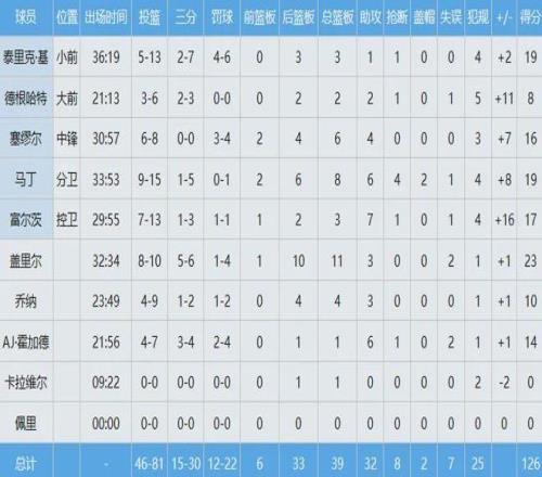 此役富尔茨投篮13中7,其中三分3中1砍下17分3板7助1断,正负值+16。