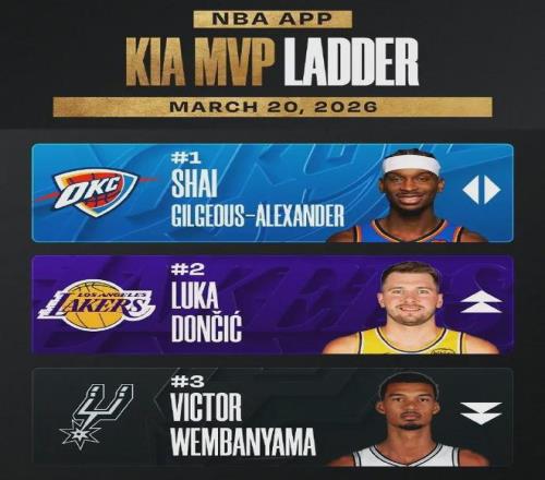 NBA公布的最新一期MVP排行榜,东契奇力压文班亚马爬升至第二,仅次于亚历山大。