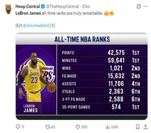 致命失误吞里程悲!41岁詹皇末节13+5竭尽全力美媒晒数据证伟大