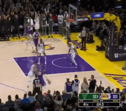 字母哥用两次对詹姆斯无比干净的防守,带领雄鹿客场105-101击败湖人。