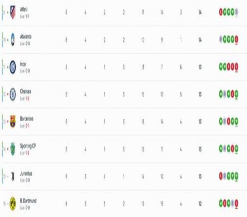 都在干什么欧冠赛前同积13分的8支球队,半场后仅曼城领先