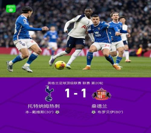 剑南春丨热刺11桑德兰,本戴维斯建功,布罗贝伊扳平比分