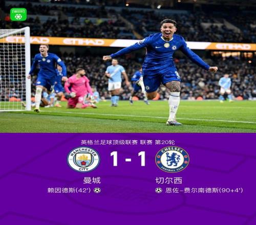 剑南春曼城11切尔西,恩佐绝平,赖因德斯破门