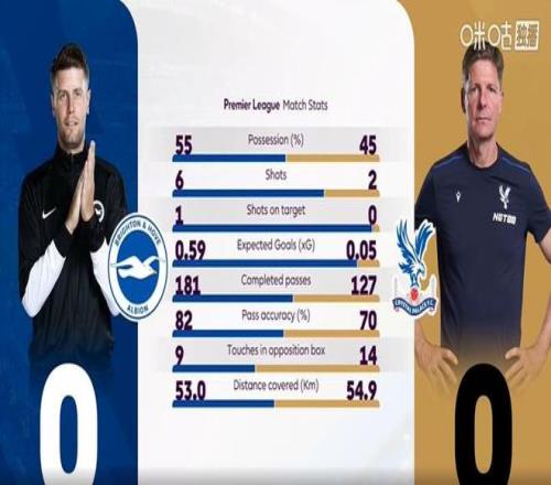 半场结束,两支球队暂时战成0-0平。上半场比赛,两队虽然比赛节奏转换的都比较快,但是雷声大雨点小,实际并没有创造出绝佳的破门机会,水晶宫在场面上略处于下风。