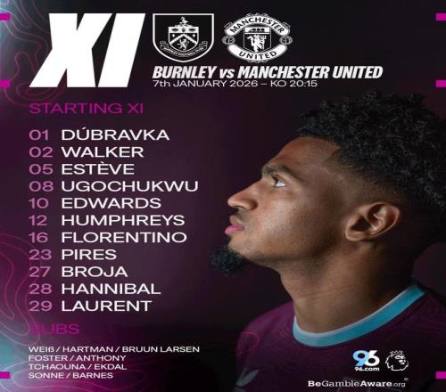 北京时间1月8日4:15,英超第21轮焦点战,曼联作客摩亚球场挑战伯恩利,本场主裁判为阿特维尔,赛前双方首发出炉。