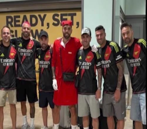 显然是在我的单身派对上,朋友们让我打扮成空乘人员的样子去美国。另外,我在布伦福德膝盖受伤复出后,第一次训练时,我打扮成了恐龙的样子。