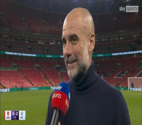 率队在英格兰联赛杯决赛2-0击败阿森纳成功夺冠之后,曼城主教练瓜迪奥拉接受了来自天空体育的采访。