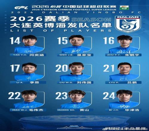 大连英博公布新赛季名单