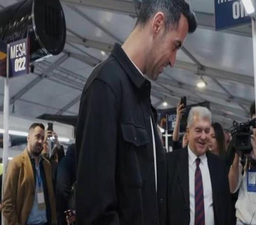 布斯克茨现身巴萨主席投票现场,在拉波尔塔的陪同下完成投票