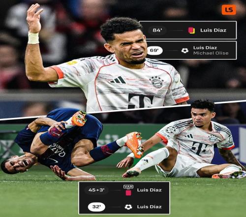 重演,路易斯迪亚斯本赛季第二次同场进球+染红