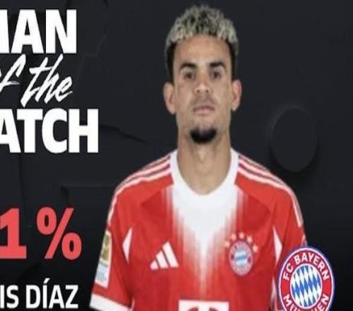 进球+染红,路易斯迪亚斯当选拜仁客战勒沃库森全场最佳球员